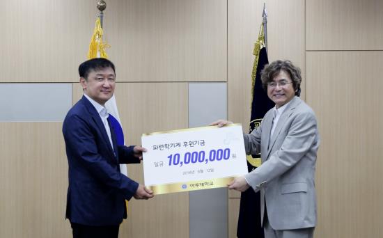 우리 학교 서형탁 교수 연구팀이 위험물질인 불소 가스의 누출을 육안으로 확인할 수 있는 착색 센서를 개발하는 데 성공했다. 불소 화합 가스는 정유, 화학, 철강 등 여러 산업 영역에 쓰이고 있으며 특히 반도체와 디스플레이 분야 생산 공정에서는 핵심 물질로 활용되고 있다.서형탁 교수(신소재공학과·대학원 에너지시스템학과, 사진 왼쪽)는 불소 화합물에 색 변화로 반응하는 무기물 기반 착색 센서를 개발했다고 밝혔다. 관련 연구는 “가스 상태의 F 검출을 위하여 다단계 물리화학적 성질 제어를 이용한 텅스텐 산화물의 폴라론 변화 기반 색변화 연구(Tunable polaron-induced coloration of tungsten oxide via a multi-step control of the physicochemical property for the detection of gaseous F)”라는 논문으로 영국왕립화학회 발간 학술지 최신호 표지 논문으로 선정됐다. 아주대학교 대학원 박사과정에 재학 중인 이상연 씨(사진 오른쪽)가 제1저자로 참여했다.불소 화합 가스는 철강, 정유 및 화학, 배터리와 디스플레이, 반도체 분야에서 널리 쓰이고 있으며 지구 온난화의 주범으로 꼽히는 온실가스의 대표적 물질이기도 하다. 특히 불소 화합물 중에서도 불산은 광물의 제련과 전자 회로, 화학 물질 제조 등에 이용된다. 불산은 반응성이 높다는 특성 덕에 반도체 실리콘 웨이퍼에서 필요하지 않은 부분을 제거하는 것과 같은 공정에 널리 활용되고 있다.하지만 불산이 누출되어 인체에 닿으면 매우 위험한 상황을 야기할 수 있다. 불산 가스가 인체 내부로 아주 쉽게 침투하기 때문. 인체 조직으로 침투한 불산은 강력한 독성을 띄고 있기 때문에 심장과 폐 등에 치명적 타격을 준다. 문제는 불소 화합물이 공기 중으로 누출되면 수분과 반응하여 불산으로 쉽게 전환된다는 데에 있다.실제로 국내에서도 불산 및 불소 화합물의 크고 작은 누출 사고가 발생한 바 있기에 이 물질의 누설을 효율적으로 감지할 수 있는 센서의 개발에 대한 수요가 많았다. 하지만 불산 가스는 무색 무취의 특징을 가지고 있어 맨눈으로 확인하기 어렵고 현재 상용화된 센서 역시 여러 제약이 있었다. 기존의 센서는 불소 가스를 용액에 녹여 발생하는 불소 음이온 농도를 간접 측정하거나, 불산이 소재 표면에 흡착할 때 발생하는 전기 신호 변화를 관찰하는 등의 방식을 이용했기 때문이다. 이런 방식을 활용하면 오작동이 많고 상시 전원을 공급 해주어야 하는데다, 가격이 비싸다는 어려움도 있었다.이에 서형탁 교수팀은 불산 및 불소 화합물 가스가 누설되는 경우 육안으로 바로 확인이 가능하도록 기존 남청색에서 투명으로 색깔이 변화하는 센서를 개발해냈다. 연구팀이 개발한 센서는 무기 소재인 텅스텐 산화물을 나노 구조로 형성한 뒤 광화학적 방식을 이용, 수소를 주입해 불산 반응에 용이하도록 소재의 화학·광학적 성질을 개선했다. 센서가 불산 가스에 반응하면 산화물의 전자 구조가 변화하고 맨눈으로 식별이 가능한 수준으로 착색 특성이 달라진다. 센서 색깔의 변화는 가스 감지 20초 이내에 발생하며 센서는 불산 가스의 농도에도 광범위하게 반응한다. 또 전기 신호로도 누설 여부를 확인할 수 있다. 연구팀이 개발한 이 기술은 상온 반도체 공정을 기반으로 해 다양한 기판에 센서를 만들 수 있고 대량생산도 가능하다.서형탁 교수는 “불소 가스가 산업계에서 널리 쓰이는 데 반해 그동안 이에 대한 안전 확보가 쉽지 않았다”며 “이번에 개발한 착색 센서가 불소 가스 안전 센서 기술로 상용화될 가능성이 매우 높다”고 말했다. 이번 연구는 한국연구재단 나노소재기술개발사업 및 BK플러스 사업의 지원을 받아 이루어졌다. 국내·외 특허 출원이 완료되었으며, 등록이 진행 중이다.