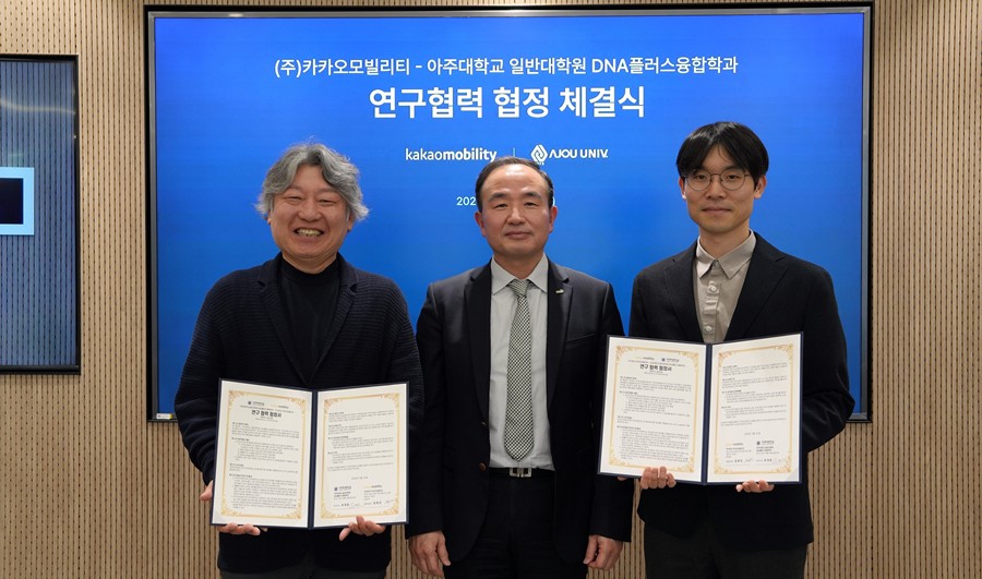 아주대학교 일반대학원 DNA플러스융합학과가 카카오모빌리티(대표 류긍선)와 첨단 모빌리티 분야의 융합 인재 양성 및 공동 연구를 위한 연구협력 협약을 지난 31일 체결했다.