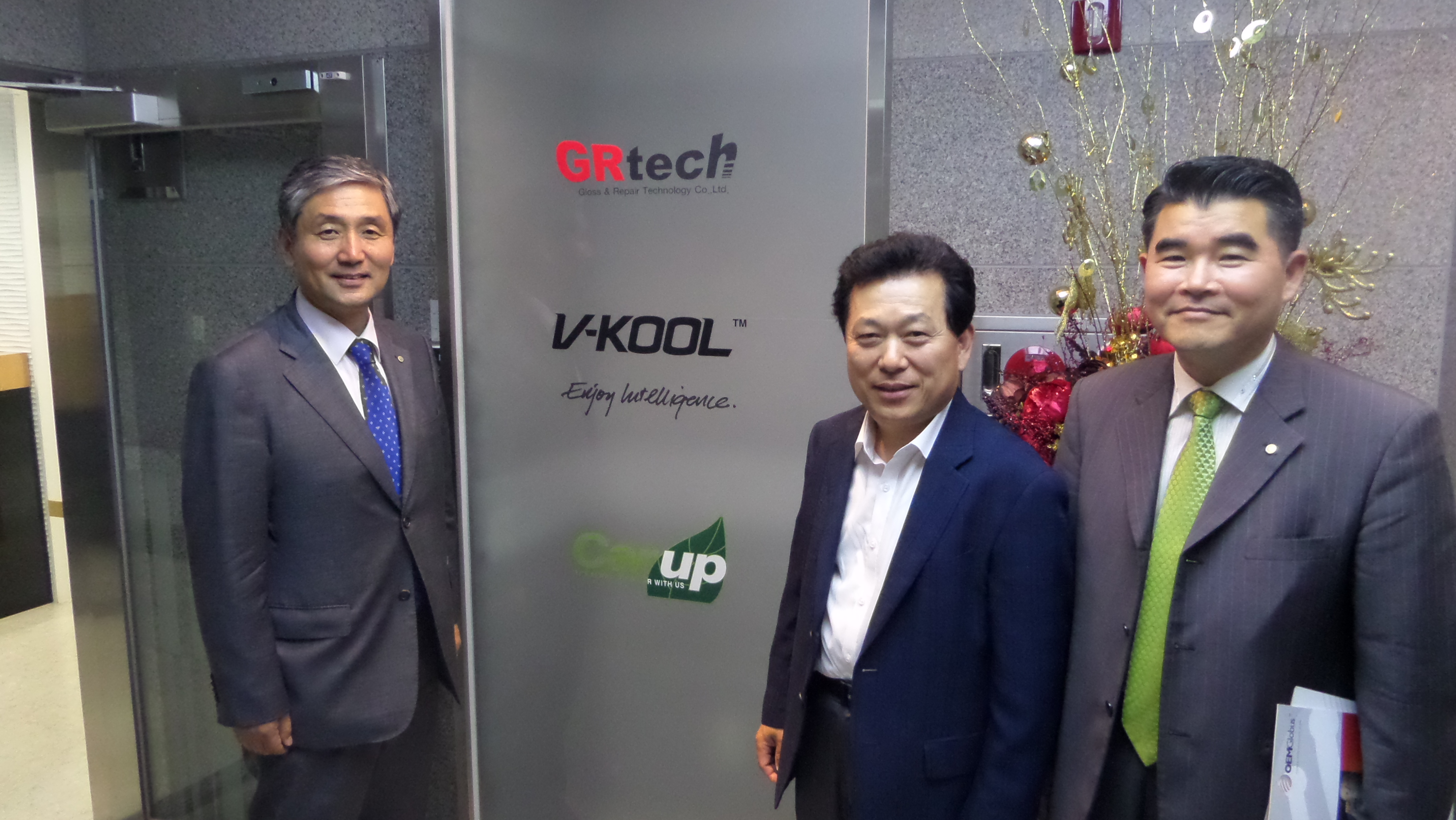 중앙에 김일* 동문 방문대상자 성 함 : 김일* 대표이사( 공학대학원 석사과정 환경공학과 2000년도 졸업 ) 소 속 : ㈜지알테크 방문자 성명 : 김윤기(대학발전본부장), 이강준, 황원복(대학발전본부) 방문일시 : 2015년 6월 9일 13시 30분 방문장소 : ㈜지알테크( 경기도 화성시 동탄면 송리 663-37 ) 자동차 내외장 관리 전문기업인 ㈜지알테크는 1994년 8월 설립한 산업용 자재 유통회사인 태영화학을 모체로 한다. 2001년 4월 ㈜G.R tech를 설립하여 미국 the PaintBull사와 계약을 체결하고 PaintBull System의 한국 판매, 교육에 대한 독점적 권리를 획득하였다. 2001년 7월 수원시 인계동 사옥을 준공하여 교육센터를 열었고, PaintBull 홈페이지를 개설하였다. 2003년 10월에는 국내 최초로 자동차용 광촉매 코팅제를 개발, 시판하였다. 사업 초기부터 자동차 관련 후진양성을 위한 교육부분에 관심이 많아 2001년 9월 신성대학을 시작으로 송원대학, 정수기능대, 대림대학, 신흥대학, 삼육대학, 화성폴리텍 대학, 신진자동차고등학교 등 자동차관련 교육기관과의 산학협력 및 실무교육 위탁사업으로 협력관계를 유지하였고, 전국 전동차학과 교수의 외장관리 연수 등 교원연수도 맡아서 이어오고 있다. 사업의 확장을 위하여 2004년 4월 스피스헥커 대리점 지정, 일본 MG사와 독점판매권 계약, 2007년 11월 일본 AQTEC과 독점계약, 2009년 3월 홀란드 골드드레곤사와 총판 제휴 및 인력,기술,교육에 관한 협약을 하였고, SK글로벌 전문가 교육, 전국자동차 광택 경진대회 개최, 전국자동차 외장관리 광택경연대회 등 다양한 활동으로 2010년 8월 창업경영인 대상을 수상하였다. 2011년 1월에는 최첨단 고급차량 썬팅용 V-KOOL 마스터 프랜차이즈와 국내공급 계약을 하였고, 2013년에 100호 점을 돌파하였다. ‘CARUP’이라는 브랜드로 광택제, 세척제, 방향제 등 다종다양의 자동차 용품을 국내시장에 공급하고 있으며, 현대자동차의 ‘블루핸드’와 기아의 ‘오토큐’ 센타에도 자동차 관리용품을 공급하고 있다. 2008년 6월에는 수원고색동 수원산업단지에 사옥을 신축하여 이전하면서 트레이닝 아카데미를 열었고, 자사 제품의 생산을 위한 공장을 오산에 보유하고 있다. 사세확장에 따라 2013년 3월에 동탄산업단지에 사옥을 신축하여 확장, 이전하였다. 현재 동탄 사옥에는 각종 보세물품의 보관, 배송을 위한 물류공간과 교육과 홍보를 겸한 스튜디오, 자동차 튜닝공간, 김동은 프로레이서를 포함한 레이싱 팀 등이 입주해 있다. 김일* 동문은 2000년에 공학대학원 환경공학과 석사과정, 2003년에는 CKO과정 3기, 2008년도에는 공공정책대학원 부동산최고위과정을 졸업한 만학도로서 석사과정에서는 원우회 회장으로서 봉사하였다. 각종 모임을 성실하게 주도적으로 이끌어가는 타입으로 지인들의 신망이 높다. 아울러, 새로운 분야에 끊임없이 도전하고 변화를 추구하는 속에서도 성실하게 사업을 이끌어오고 있어, 향후 최고의 종합 자동차 관리그룹으로 성장하려는 꿈을 키우고 있다.