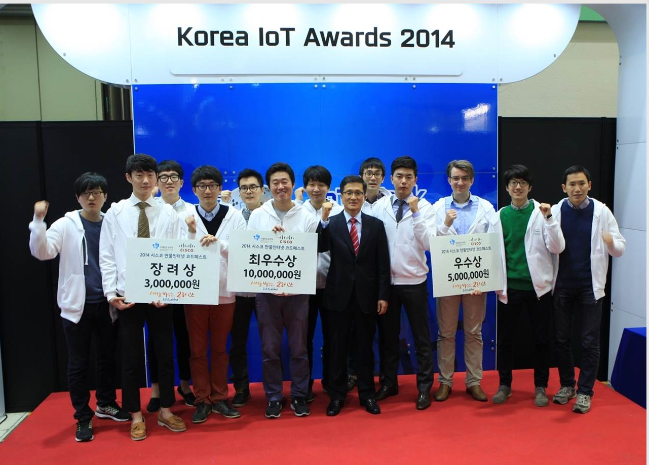 2014년 11월 5일~6일 송도에 소재한 시스코 IoE 혁신센터 ‘GCoE’에서 개최된 ‘세상을 바꾸는 28시간, IoE Codefest'대회에서 아주대학교 학생들로 구성된 팀이 3등에 해당하는 장려상을 수상했습니다. 소프트웨어융합학과 곽범진, 정보컴퓨터공학과 우철희, 강다훈, 정광현 학생들이 팀을 이루어 참여했습니다. IoE 코드페스트(Codefest)에 참가한 학생들은 미래창조과학부가 후원하는 서울어코드활성화사업이 지원하는 ‘IT집중교육1’과 ’소프트웨어융합프로젝트1’ 교과목에서의 프로젝트를 기반으로 대회에 참가했습니다. 다음은 아이티데일리에 게재된 기사 전문 입니다. [아이티데일리] 시스코 코리아(대표 정경원)는 국내 개발자들과 학생들은 물론 신생 기업들과 솔루션 파트너사들이 만물인터넷(IoE) 솔루션 개발에 각별한 관심과 함께 경쟁력을 갖도록 마련한 ‘세상을 바꾸는 28시간, IoE 코드페스트(Codefest)’ 대회를 성황리에 마쳤다고 7일 밝혔다. 이번 대회는 미래부가 개최하는 IoT 글로벌 민관 협의체 공동 IoT 제품·서비스 경진대회의 한 축으로, 송도에 소재한 시스코 IoE 혁신센터 ‘GCoE’에서 지난 5일과 6일 양일에 걸쳐 총 33개 팀 103명의 개발자들이 참여한 가운데 진행됐다. 그 결과 ‘그린라이트’(박현택, 나세원, 윤성근, 정주황, 한지인) 팀이 ‘깜빡이 감응 교통 시스템’으로 최우수상의 영예를 안았다. 또 ‘ICU’(렌스키 아르템, 설순욱, 막심 막시모브, 김현규) 팀이 ‘관심 영역 이미지 추출 솔루션’을, ‘착한팀’(우철희, 강다훈, 곽범진, 정광현) 팀이 ‘첨단 스마트 놀이공원’ 프로그램으로 각각 우수상과 장려상을 수상했다. 이번 대회에서 최우수상을 수상한 ‘깜빡이 감응 교통 시스템’은 차량의 좌우 깜빡이 신호를 센서를 통해 자동으로 감지해 불필요한 신호 대기 및 혼잡을 완화할 수 있도록 기존 교통 시스템을 효율화해 높은 평가를 받았다. 이 밖에도 이번 대회에서는 ▲위치기반 시스템을 활용한 똑똑한 대형 공연장 안내 시스템 ▲센서를 활용한 효율적인 동물원 관리시스템 등 신선하고 창의적인 다수 IoE 프로그램이 제안돼 무궁무진한 IoE 솔루션 부문의 성장 가능성을 보여주기도 했다. 시스코 코리아는 이번 대회를 준비하며 IoE 솔루션 개발을 독려하기 위한 기술 웨비나를 진행하는 것은 물론 개발자들을 직접 찾아 나서기도 하는 등 국내 IoE 전문가 육성을 위해 상당한 노력을 기울인 바 있다. 정경원 시스코 코리아 대표는 “이번 대회로 발굴된 프로그램 중 비즈니스 측면에서도 추가적인 개발 가치가 있다고 판단이 되는 아이템들의 경우 협의를 통해 지속적인 지원도 아끼지 않을 것”이라며, “시스코는 국내 IoE 산업 활성화를 위한 다각적인 노력을 앞으로도 계속해 나갈 것”이라고 밝혔다. 2014년 11월 07일(금) 17:32:09 김나영 기자 kny7732@itdaily.kr