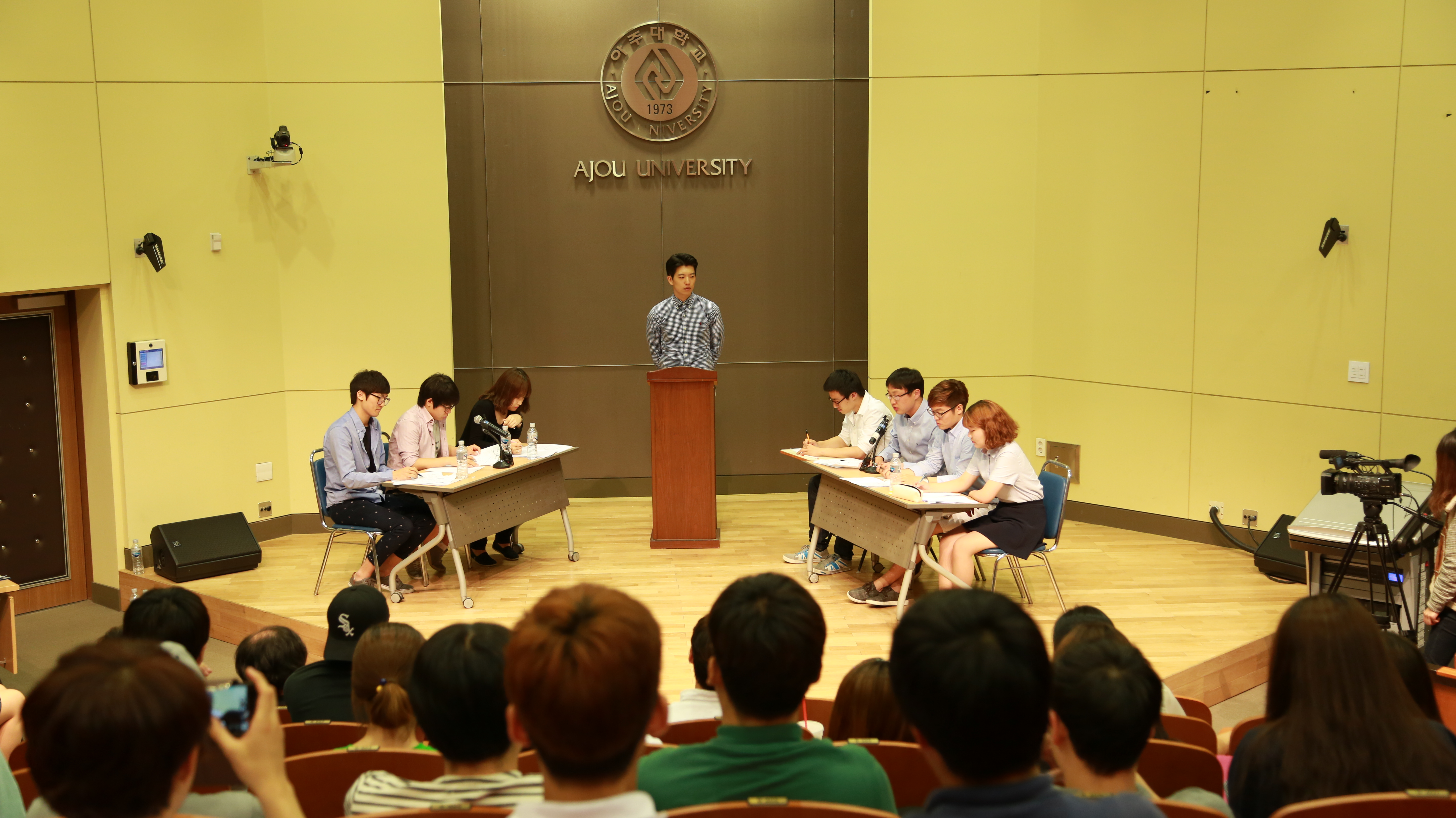 ‘아주토론대회’ 大賞 산업공학과 박준표, 오혁준, 이승연 -「고전」과 「토론」의 만남....전공 구분없이 학부생 100명 참가 -온오프를 넘나들며 새로운 형식으로 진행 2014학년도 제1차 아주토론대회에서 산업공학과의 박준표, 오혁준, 이승연 학생이 대상을 차지했다. 고전 읽기를 통한 현실 진단이라는 형식으로 진행된 이번 대회는 전공 구분 없이 100명의 학생이 32개 팀으로 나뉘어 온라인 예선을 거쳐 4개팀이 오프라인에서 열띤 토론을 벌여 우승팀을 가렸다. 기초교육대학 다산기초교육연구소가 주최한 이 번 대회는 청년기에는 이론물리학자로, 장년기에는 인기 소설가로, 말년에는 과학정책을 담당하는 공직자로서의 삶을 보낸 스노우(Charles Percy Snow)의 「두 문화(Two Cultures)」을 바탕으로 진행되었다. 예선은 참가팀별 주장(입론)과 상대팀의 주장에 대한 반박, 반박에 대한 재반박을 온라인(http://debate.ajou.ac.kr) 상에서 정리하여 발표하는 교차조사방식(CEDA) 방식으로 진행되어 본선진출 4개 팀을 가렸고 지난 5월 30일 원천관 강당에서 2개팀씩 대면 토론을 벌여 최종 우승팀을 선발했다. 「고전」과 「토론」의 만남이라는 색다른 형식으로 진행된 2014학년도 제1차 아주토론대회는 고전을 통해 현대의 사회적 이슈를 진단하고, 적극적인 표현방식인 토론을 통해 스스로 성장할 수 있는 계기를 마련하기 위해 기획되었다. 특히 참가자가 직접 의제를 결정하고, 온라인을 통한 다자간 토론 진행이라는 새로운 방식으로 진행되었는데, 이번 대회에는 이공계열학생들의 참여가 돋보였다. 대회의 심사를 맡은 정재영(기초교육대학) 교수와 이진희(기초교육대학) 교수는 심사평에서 “2014 아주고전토론대회는 우리가 낯설게 생각하는 학술적 토론과 우리가 어렵게 생각하는 학술적 책 읽기가 지적 열정을 동반하는 축제의 장으로 될 수 있다는 가능성을 보여주었다는 점에서 매우 고무적으로 생각한다. 이번 대회를 통해서 젊고 창의적인 아주대의 힘을 다시 한 번 확인할 수 있다는 점을 무엇보다 기쁘게 생각한다”고 말하였다. 매 학기마다 진행될 아주토론대회는 학과에 구분 없이 누구나 참여할 수 있으며 토론대회에 참가하는 학생들에게는 상패와 부상은 물론 비교과 마일리지까지 부여한다. 한편 ‘2014학년도 제2차 아주토론대회’는 2학기 중 열릴 예정이며 토론대회에 참여를 희망하는 학생들은 기초교육대학교학팀(219-2865) 또는 다산기초교육연구소(219-3550)로 문의하면 된다. 대 상 : 산업공학과팀(박준표, 오혁준, 이승연) 우수상 : 정치외교학과팀(이종관, 김태훈, 손민아, 이영진) 입 상 : 산업공학과팀(임성현, 이승훈, 조현선), 기계공학과·전자공학과·문화콘텐츠학과 연합팀(최재용, 이윤정, 강지현)