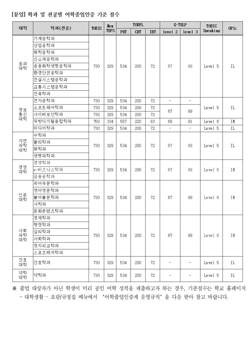[학부] 어학졸업인증(2026년 8월 졸업)을 위한 공인어학 성적 등록 및 제출 안내 (~2026.7.24)