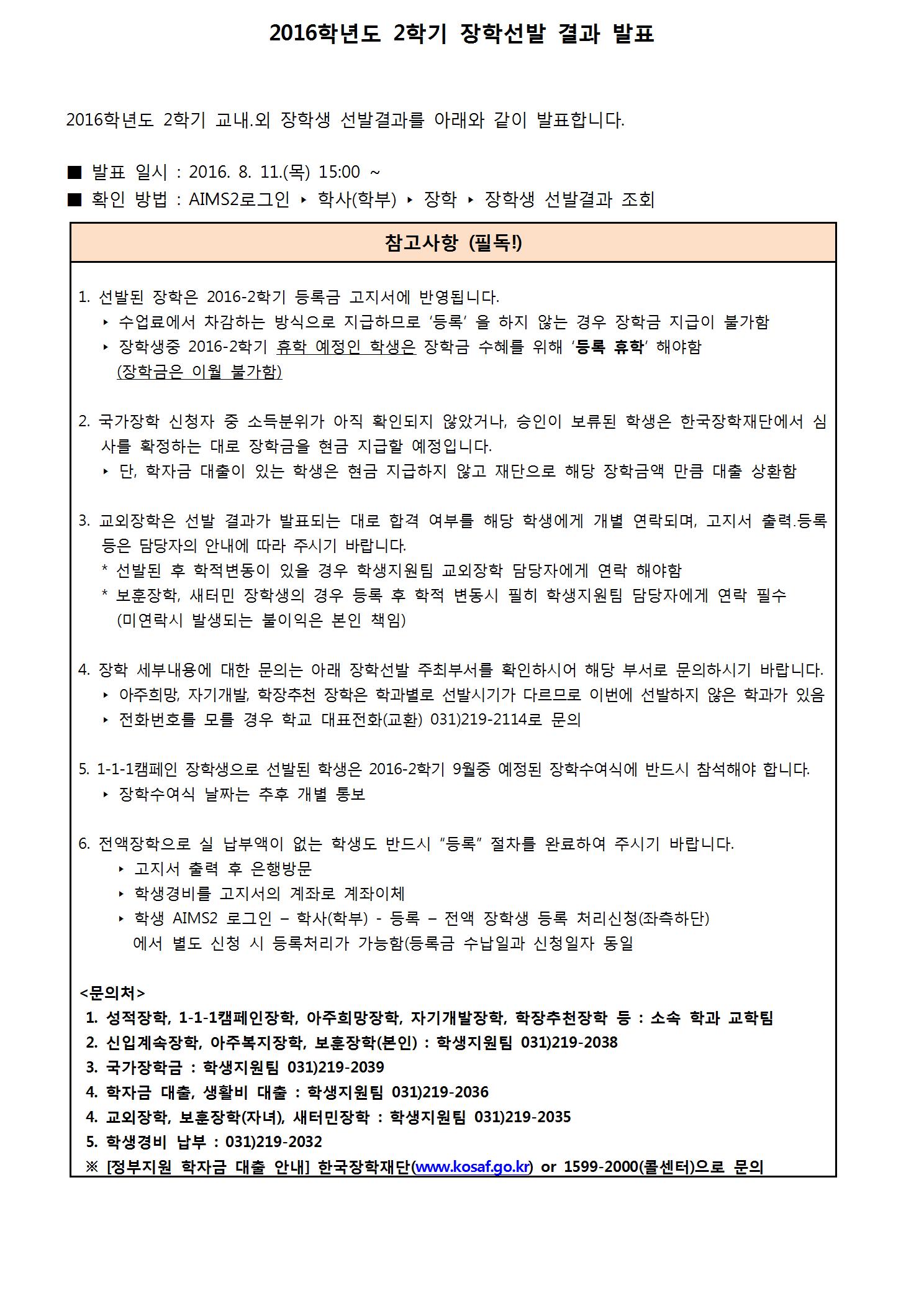 | 2213 | 장학 | 학생지원팀 | 2016-08-10 | ||